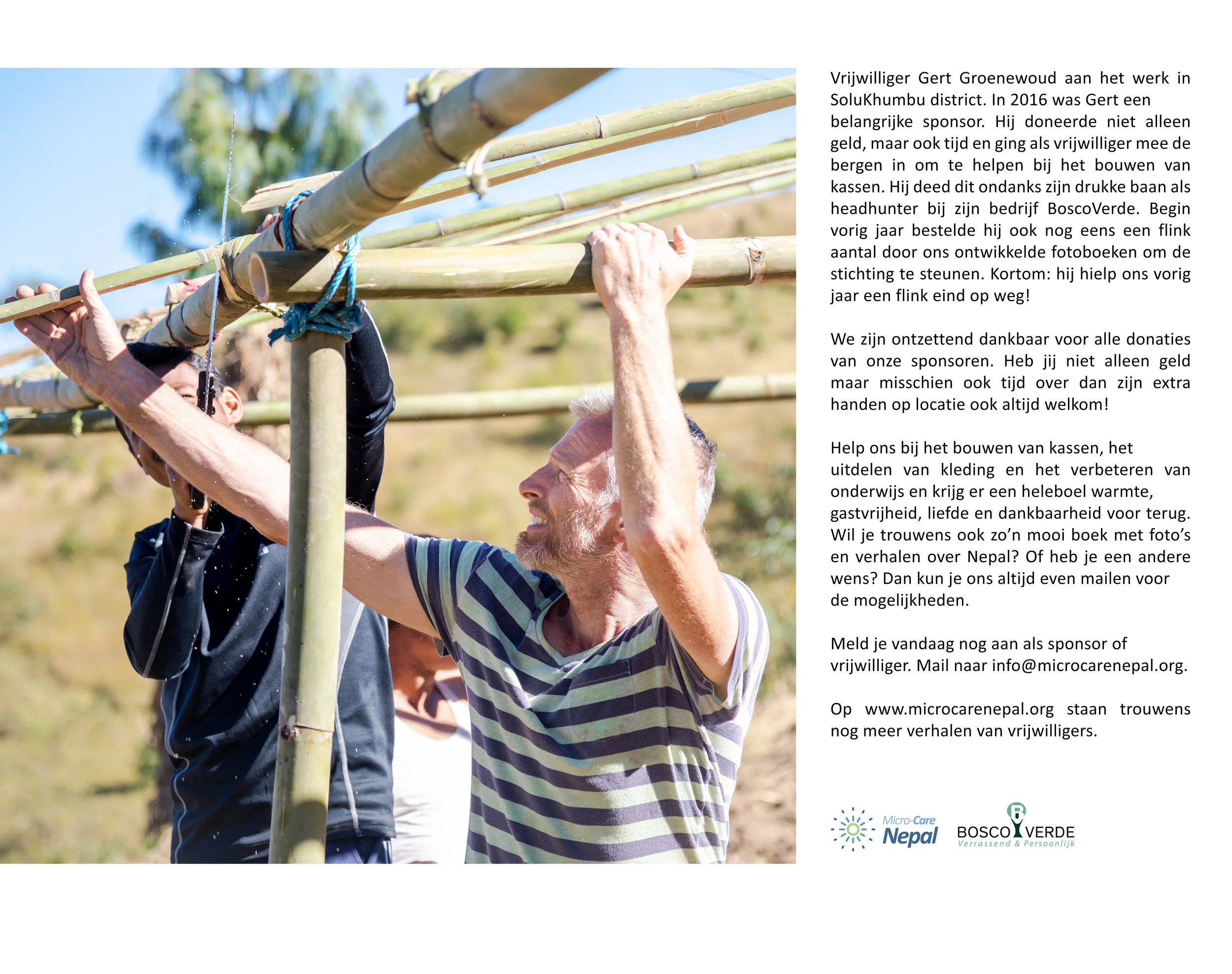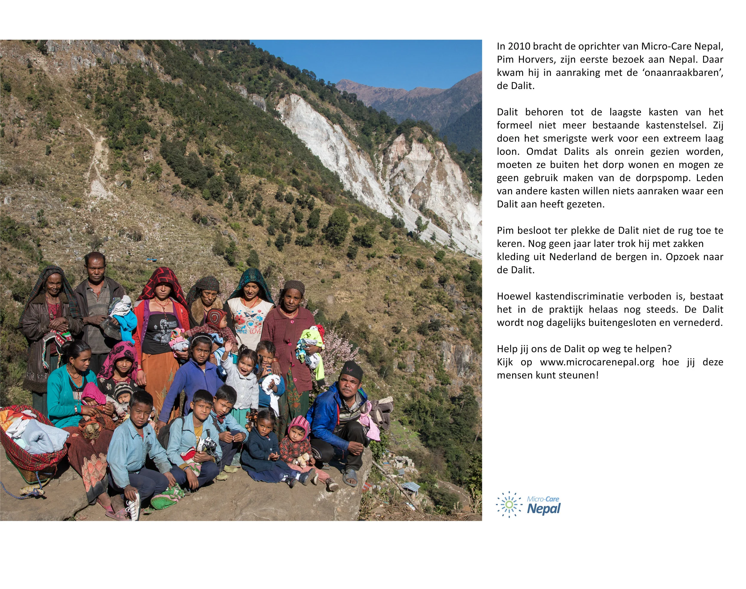 “Koop bewust. 50% van de opbrengst van de verkoop van deze kalenders en ansichtkaarten van “Pim Horvers Photography” gaat naar Stichting Micro-Care Nepal.”