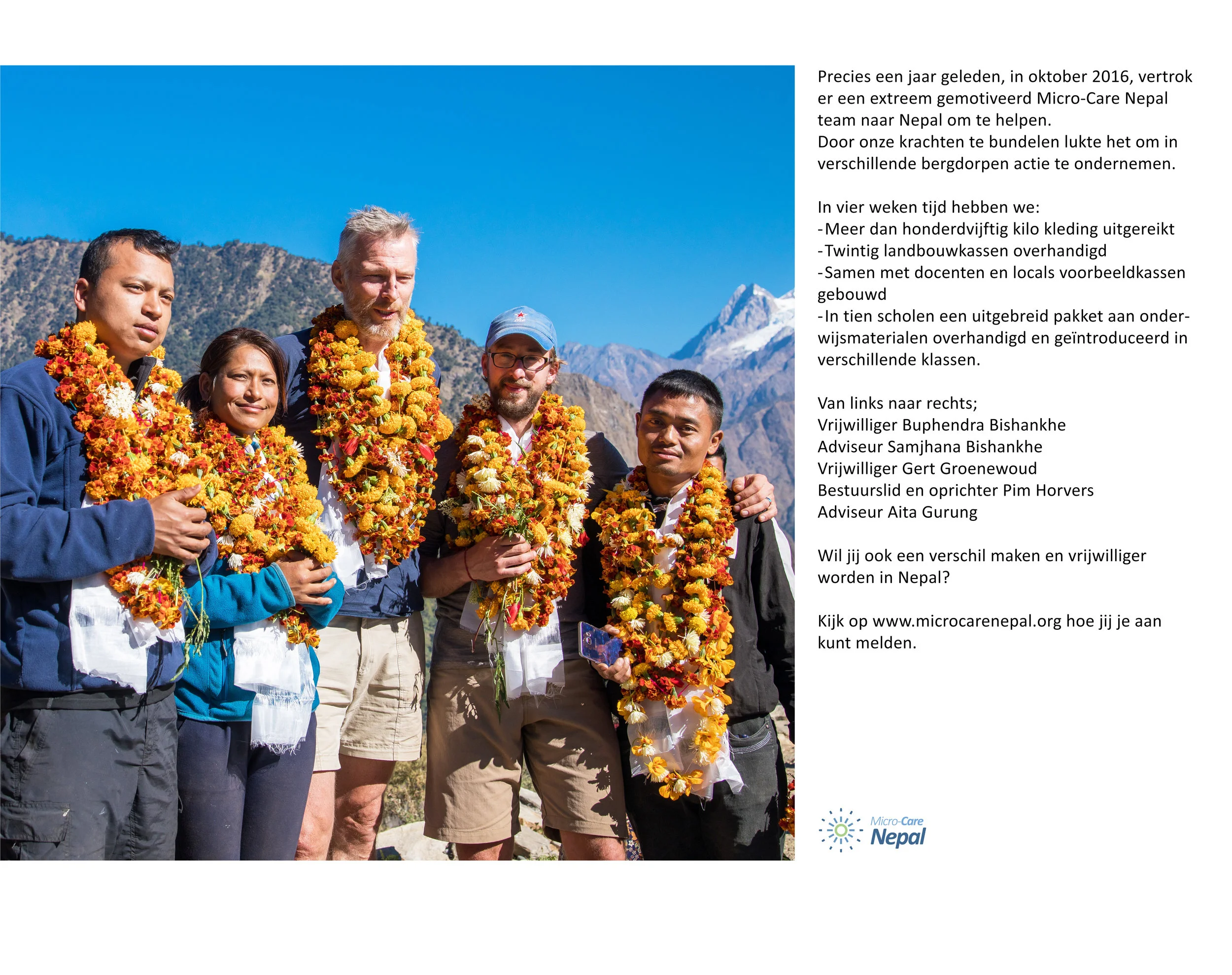 De Micro-Care Nepal kalender voor 2017 staat voor je klaar. Prachtige foto's en korte beschrijvingen van onze projecten en vrijwilligers.