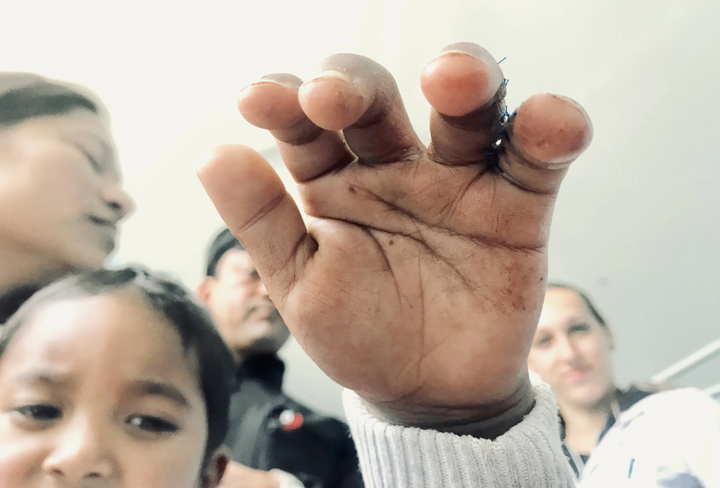 The little boy Sugan his two fingers are attached since birth. “He likes to have a hand like other children” as he describes in his own words to us. We consulted with the hospital and we where informed this was only possible in Kathmandu.